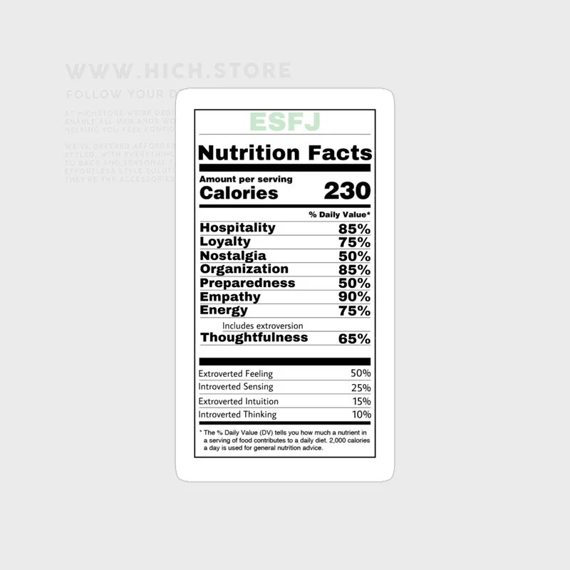 استکیر شخصیت ESFJ، برچسب پلاستیکی پشت چسب دار بوده که ضد خش و ضد آب می باشد. این استیکر چاپ و چسب بسیار با کیفیتی دارد و روی سطوحی مانند فلز، پلاستیک، شیشه، کاغذ و چوب با چسندگی عالی می چسبد. استیکرها را می توانید برای تزئین اسباب و اکسسورهای شخصی خود مانند لپ تاپ، تلفن همراه، آینه، شیشه، کتاب و دفتر، ماگ و لیوان، اسکیت برد و … استفاده کنید.