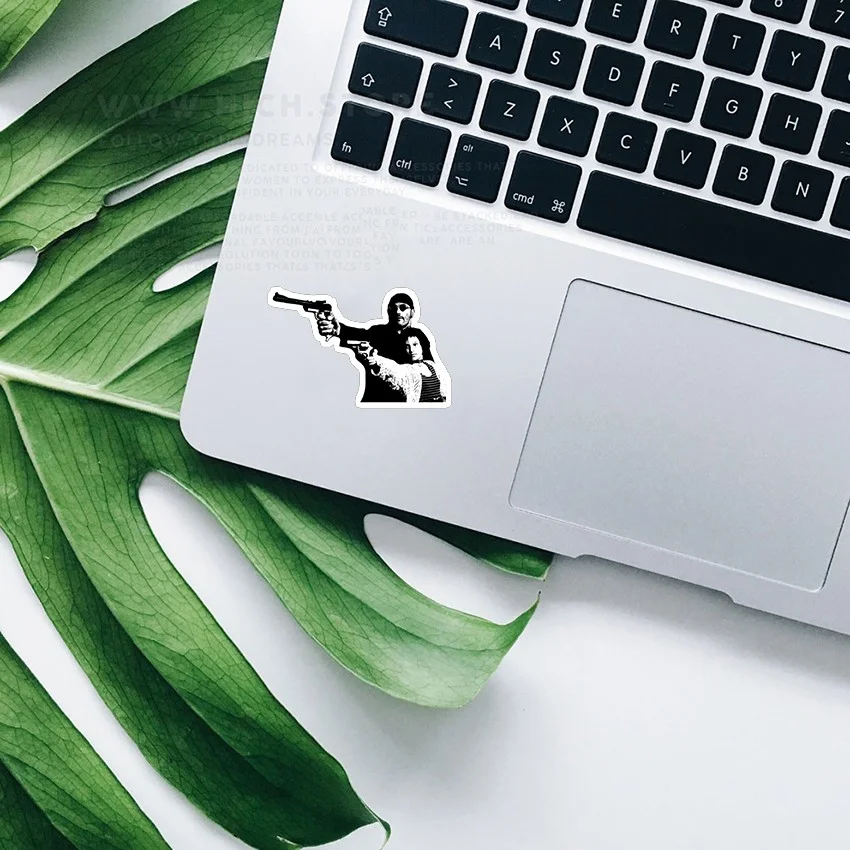 استیکر لئون و ماتیلدا، برچسب پلاستیکی پشت چسب دار بوده که ضد خش و ضد آب می باشد. این استیکر چاپ و چسب بسیار با کیفیتی دارد و روی سطوحی مانند فلز، پلاستیک، شیشه، کاغذ و چوب با چسندگی عالی می چسبد. استیکرها را می توانید برای تزئین اسباب و اکسسورهای شخصی خود مانند لپ تاپ، تلفن همراه، آینه، شیشه، کتاب و دفتر، ماگ و لیوان، اسکیت برد و … استفاده کنید.