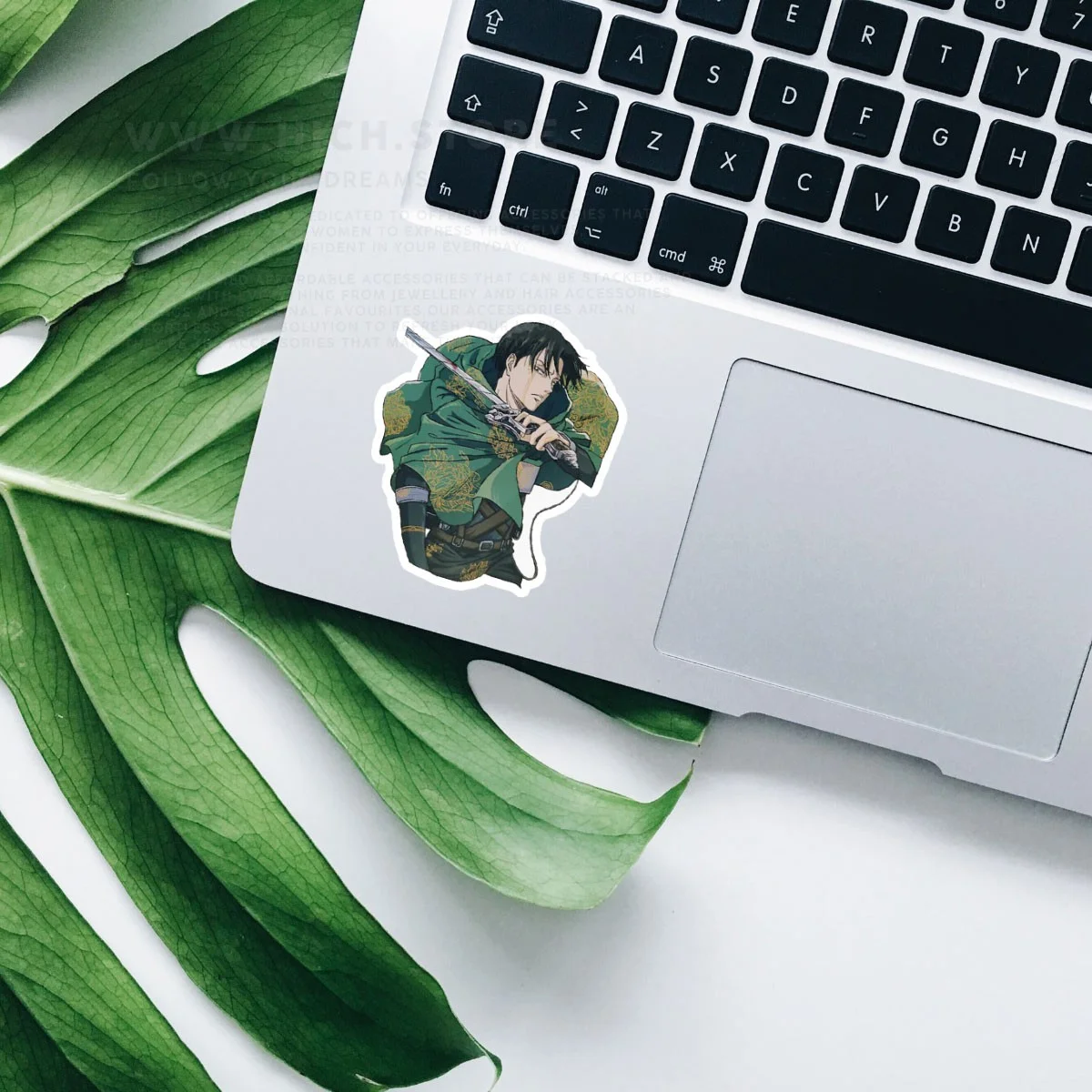 استیکر Levi اتک آن تایتان، برچسب پلاستیکی پشت چسب دار بوده که ضد خش و ضد آب می باشد. این استیکر چاپ و چسب بسیار با کیفیتی دارد و روی سطوحی مانند فلز، پلاستیک، شیشه، کاغذ و چوب با چسندگی عالی می چسبد. استیکرها را می توانید برای تزئین اسباب و اکسسورهای شخصی خود مانند لپ تاپ، تلفن همراه، آینه، شیشه، کتاب و دفتر، ماگ و لیوان، اسکیت برد و … استفاده کنید.