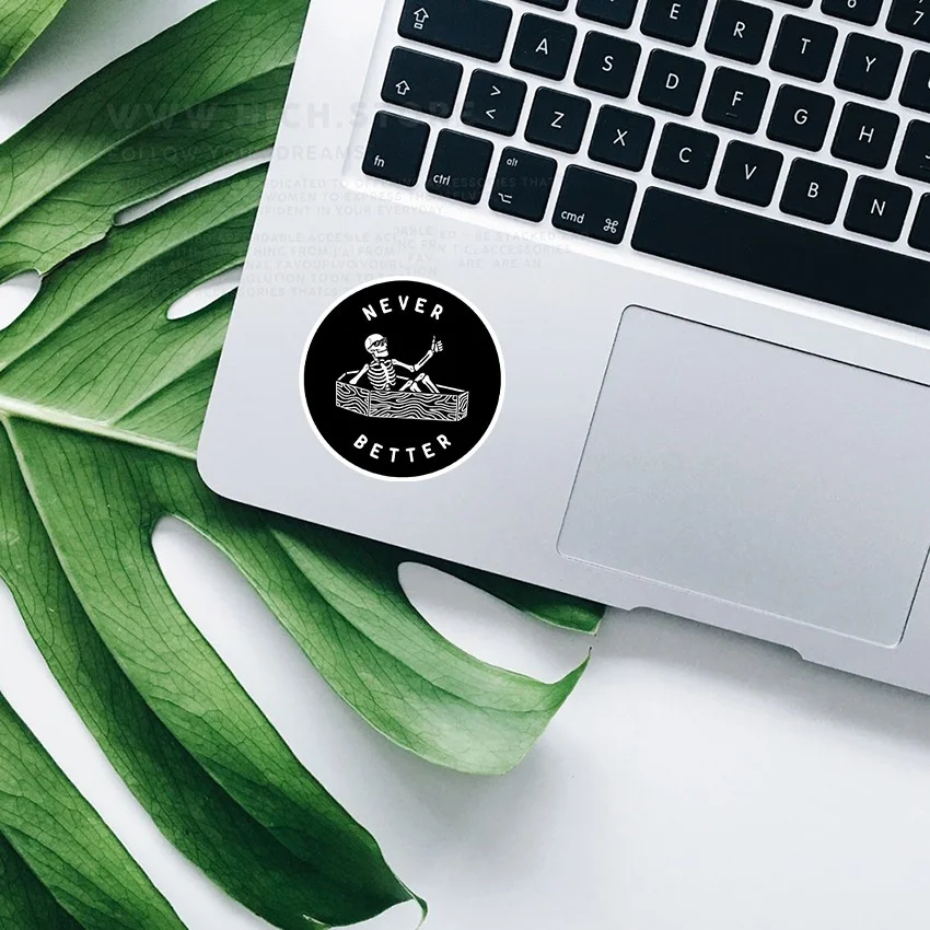 استیکر never better، برچسب پلاستیکی پشت چسب دار بوده که ضد خش و ضد آب می باشد. این استیکر چاپ و چسب بسیار با کیفیتی دارد و روی سطوحی مانند فلز، پلاستیک، شیشه، کاغذ و چوب با چسندگی عالی می چسبد. استیکرها را می توانید برای تزئین اسباب و اکسسورهای شخصی خود مانند لپ تاپ، تلفن همراه، آینه، شیشه، کتاب و دفتر، ماگ و لیوان، اسکیت برد و … استفاده کنید.