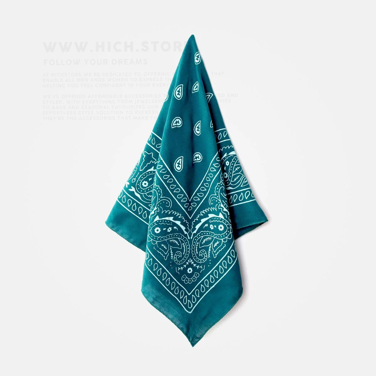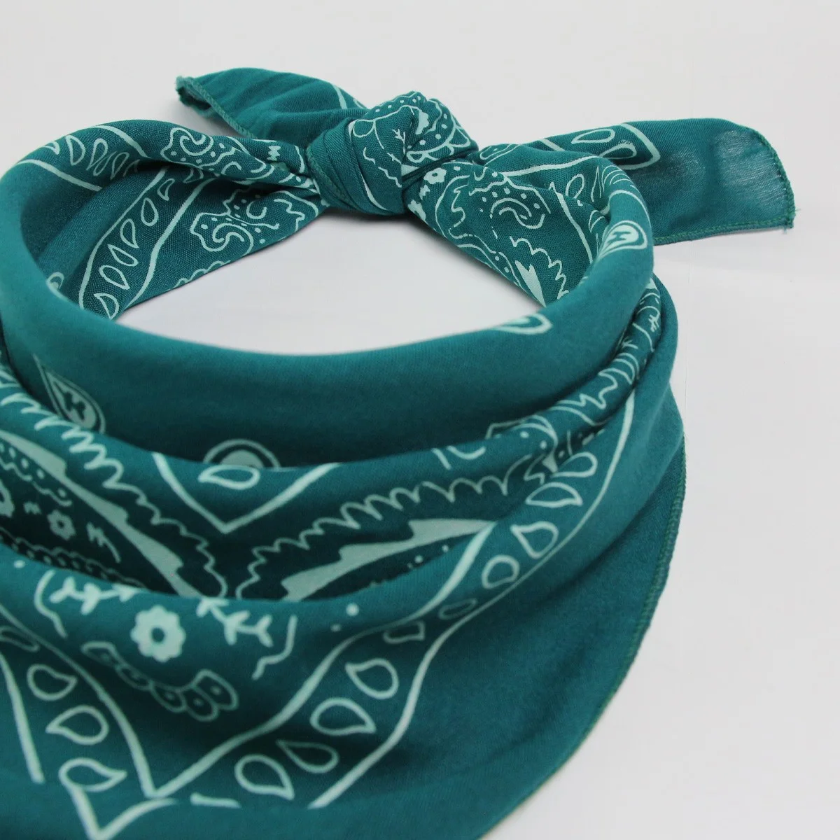 باندانا سبزآبی مدل اشکی 100 درصد پنبه بوده و به عنوان دستمال گردن، دستمال سر، دستبند، تاپ، بند کیف، کمربند و .. می تواند مورد استفاده قرار گیرد. جنس این باندانا به گونه ای است که قابل شستشو در دمای 30 درجه توسط دست یا ماشین لباسشویی بوده و رنگ آن ثابت است. ابعاد این محصول 50 در 50 سانتی متر بوده و پارچه آن به نسبت دیگر بانداناهای موجود در بازار از ضخامت و کیفیت بالاتری برخوردار است. مزیت دستمال باندانا به طیف متنوع روش های پوشیدن آن است که آن را به محصولی فراگیر برای خانم ها و آقایان تبدیل کرده.