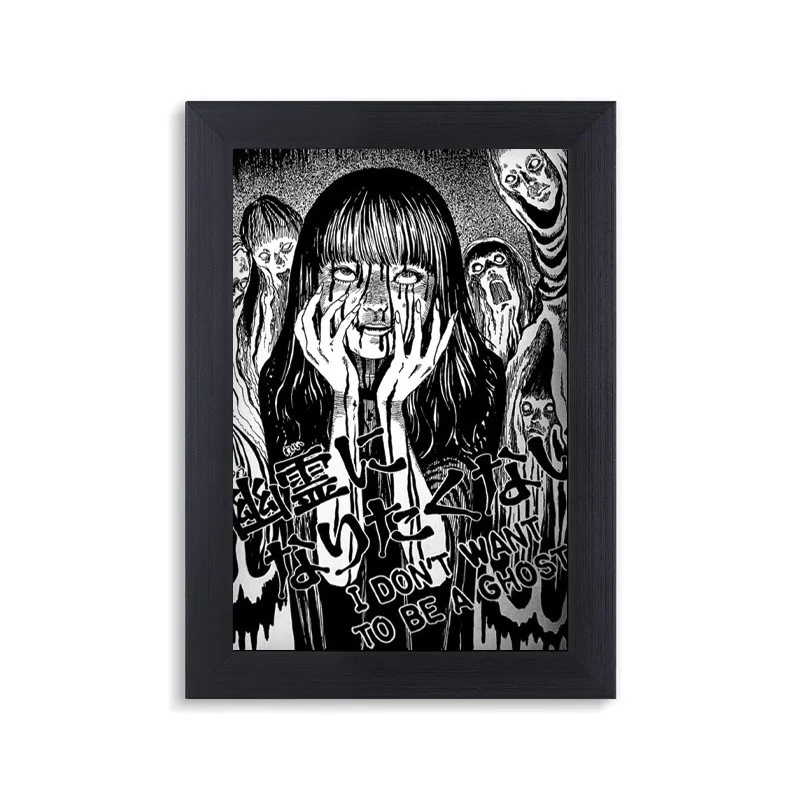 قاب و تابلو اسکچ دختر ژاپنی با فریم مشکی PVC تولید و عرضه شده، سایز پوستر داخل این قاب عکس 10 در 15 سانتی‌متر است.