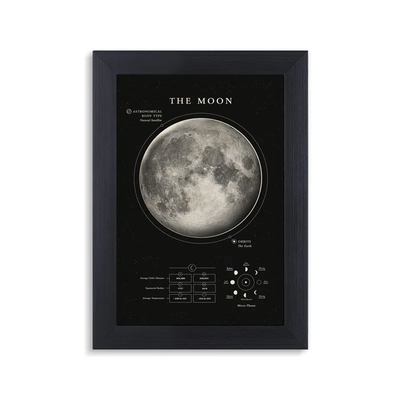 قاب و تابلو نقشه ماه با فریم مشکی PVC تولید و عرضه شده، سایز پوستر داخل این قاب عکس 10 در 15 سانتی‌متر است.