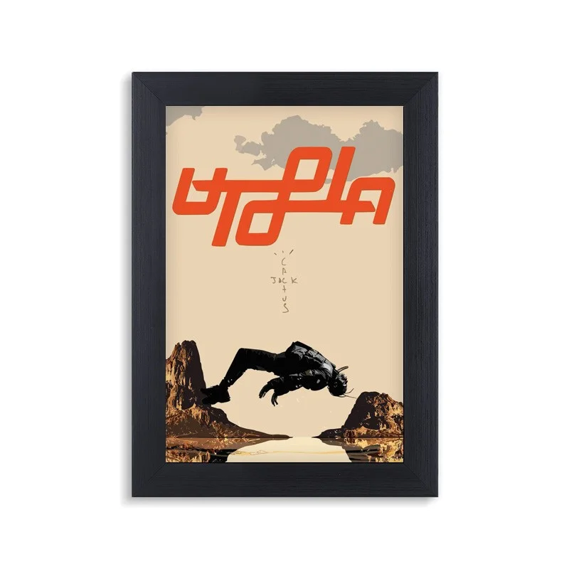 قاب و تابلو یوتوپیا تراویس با فریم مشکی PVC تولید و عرضه شده، سایز پوستر داخل این قاب عکس 10 در 15 سانتی‌متر است.