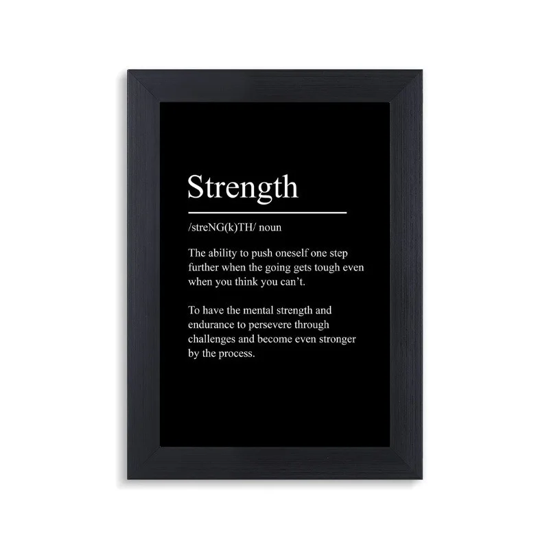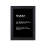 قاب و تابلو Strength نوشته با فریم مشکی PVC تولید و عرضه شده، سایز پوستر داخل این قاب عکس 10 در 15 سانتی‌متر است.