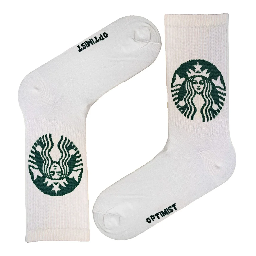 استارباکس، برند قهوهفروشی زنجیرهای که سال ۱۹۷۱ تو سیاتل تأسیس شد، با لوگوی پری دریایی سبز و نوشیدنیهای محبوبی مثل وانیلا لته و موکا، به نمادی از فرهنگ کافیشاپی تبدیل شده. این برند تو ایران هم بین قهوهدوستان و جوونا به خاطر فضای نوستالژیک و اکسسوریهای جذابش طرفدار داره. جوراب استار باکس با الهام از این برند، لوگوی دایرهای Starbucks، لیوانهای قهوه فانتزی یا المانهای کافیشاپی مثل دانههای قهوه رو با نخهای رنگی بهصورت بافتهشده بازسازی کرده. برخلاف جورابهای چاپی، این طرحها با نخ بافته شدن که دوام بیشتری دارن و جلوهای سهبعدی و هنری به جوراب میدن.