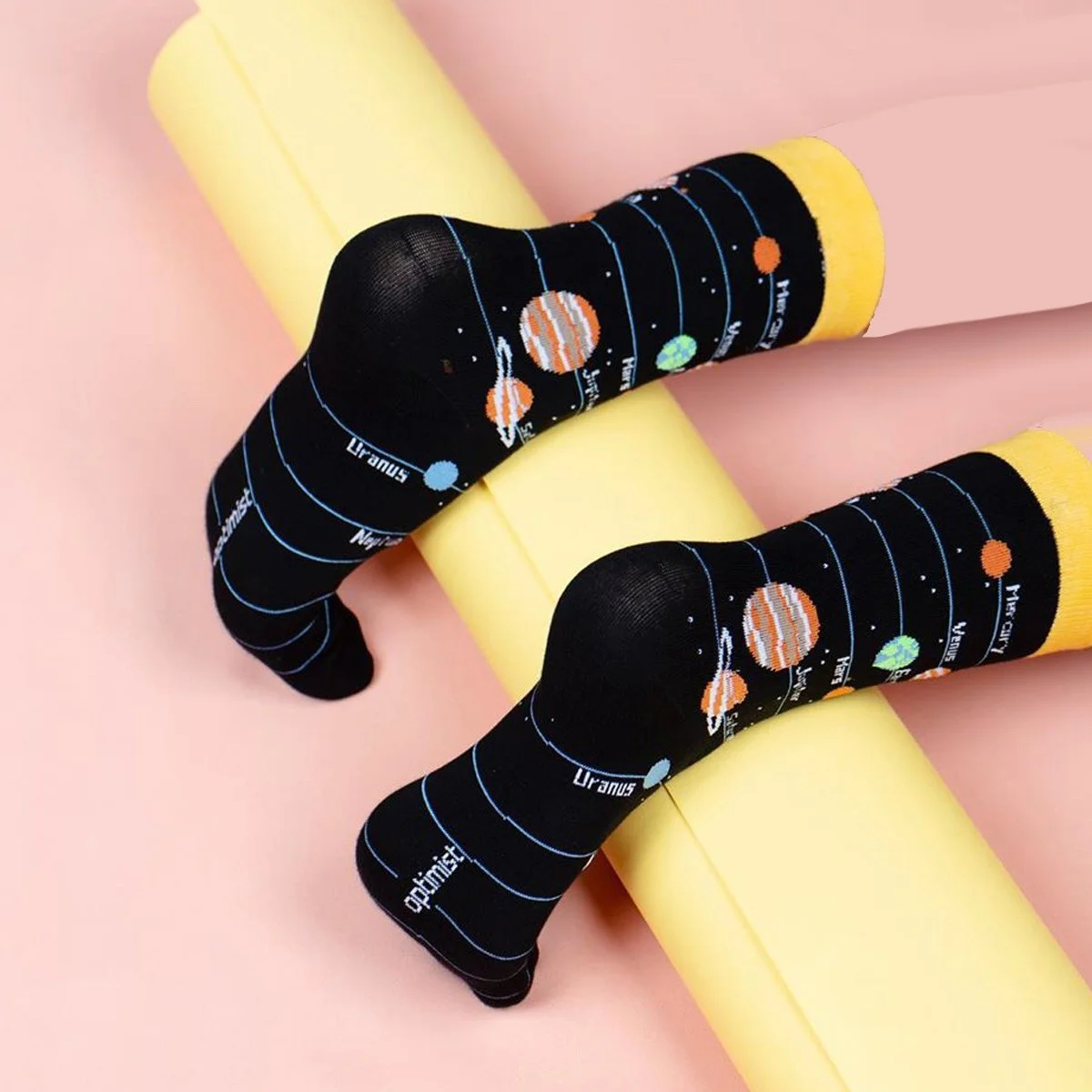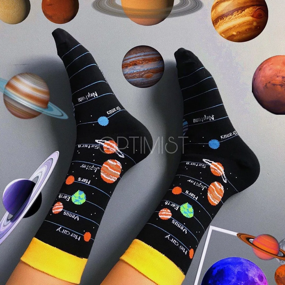 در تولید جوراب طرح منظومه شمسی از الیاف مرغوب پنبه استفاده شده که باعث نرمی و لطافت جوراب می شود. پلی آمید بکار رفته در تولید آن نیز خاصیت آنتی باکتریال داشته و باعث می شود پای شما بو نگرفته و در عین حال از ایجاد قارچ بین انگشتان پا و التهاب پوستی جلوگیری می نماید. الاستین موجود نیز باعث ایجاد خاصیت کشسانی جوراب میشود.