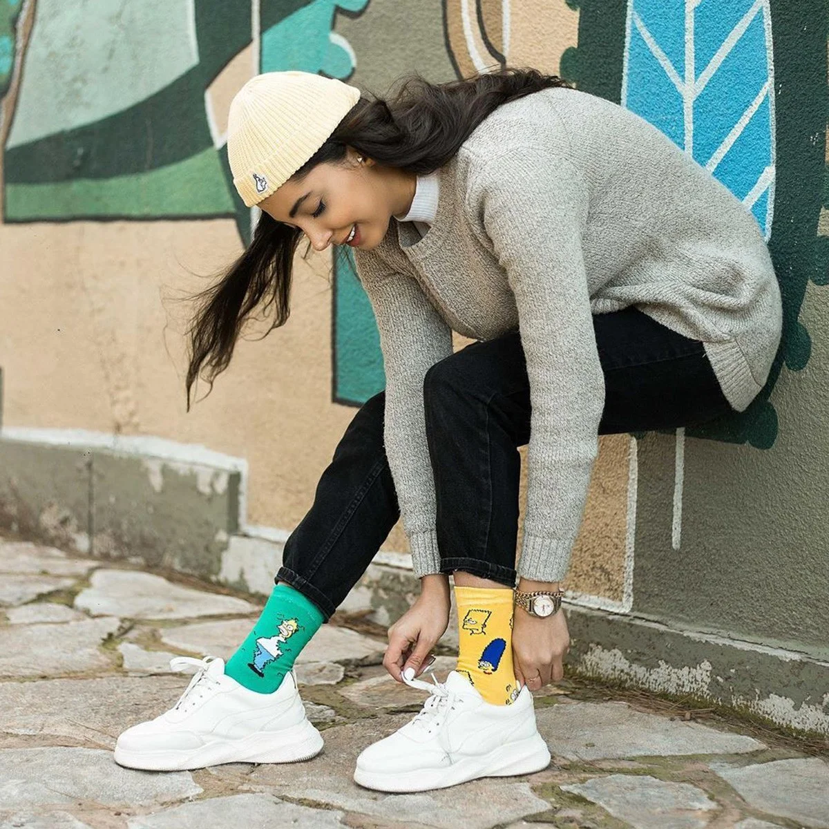 در تولید جوراب فانتزی سیمپسونها از الیاف مرغوب پنبه استفاده شده که باعث نرمی و لطافت جوراب می شود. پلی آمید بکار رفته در تولید آن نیز خاصیت آنتی باکتریال داشته و باعث می شود پای شما بو نگرفته و در عین حال از ایجاد قارچ بین انگشتان پا و التهاب پوستی جلوگیری می نماید. الاستین موجود نیز باعث ایجاد خاصیت کشسانی جوراب میشود.