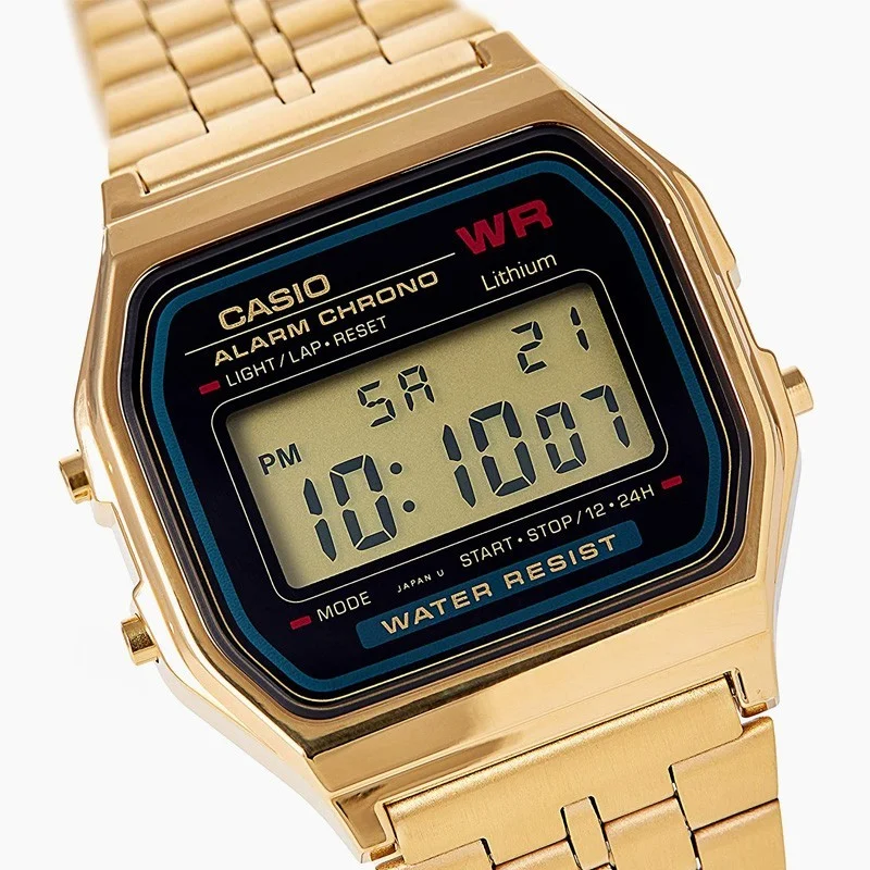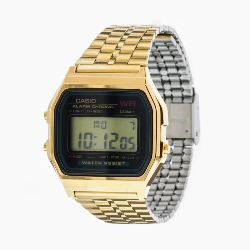 [vc_row equal_height=”yes” content_placement=”top”][vc_column offset=”vc_col-md-8 vc_col-xs-12″][woodmart_title color=”primary” align=”right” style=”underlined” title=”ساعت مچی دیجیتالی کاسیو – طلایی رنگ” css=”.vc_custom_1600033859622{margin-bottom: 30px !important;}” woodmart_css_id=”5f5e943968826″ title_width=”100″ woodmart_empty_space=””][woodmart_gallery images=”3791,3792,3793,3794″ view=”carousel” spacing=”20″ slides_per_view=”2″ hide_pagination_control=”yes” img_size=”600×600″ autoplay=”no” hide_prev_next_buttons=”no” wrap=”no” center_mode=”no” caption=”0″ lazy_loading=”no” scroll_carousel_init=”no” woodmart_empty_space=””][vc_column_text text_larger=”no”]ساعت مچی دیجیتالی طرح Casio مدل A159WGEA با قیمت بسیار مناسبش یکی از ساعتهای محبوب برای جوان شیک پوش و شیک پسند است. این ساعت در دستهی ساعتهای اسپرت قرار میگیرد و جوانهای تیپ اسپرتی آن را میپسندند. ساعت مچی کامپیوتری طرح Casio مدل A159WGEA قابلیتهای جالبی دارد؛ از جمله نور صفحه که استفاده از ساعت را در شب میسر میکند، نشانگر ۲۴ ساعته، تاریخ و ماه شمار، هشدار و کرنومتر و نمایشگر روزهای هفته و…[/vc_column_text][/vc_column][vc_column width=”1/3″ woodmart_sticky_column=”false” css=”.vc_custom_1598122805943{margin-top: 40px !important;margin-bottom: 25px !important;}” mobile_bg_img_hidden=”no” tablet_bg_img_hidden=”no” woodmart_parallax=”0″ parallax_scroll=”no” mobile_reset_margin=”no” tablet_reset_margin=”no”][vc_tta_accordion style=”flat” shape=”square” color=”white” c_align=”right” active_section=”1″ no_fill=”true”][vc_tta_section i_icon_fontawesome=”fas fa-tasks” add_icon=”true” title=”مشخصات فنی” tab_id=”info”][vc_column_text text_larger=”no”]
