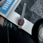 • طراحی شیک و کلاسیک: رنگ زرشکی صفحه یا بند، در کنار بدنه استیل نقرهای یا طلایی، ظاهری مجلل و مینیمال ایجاد میکند.