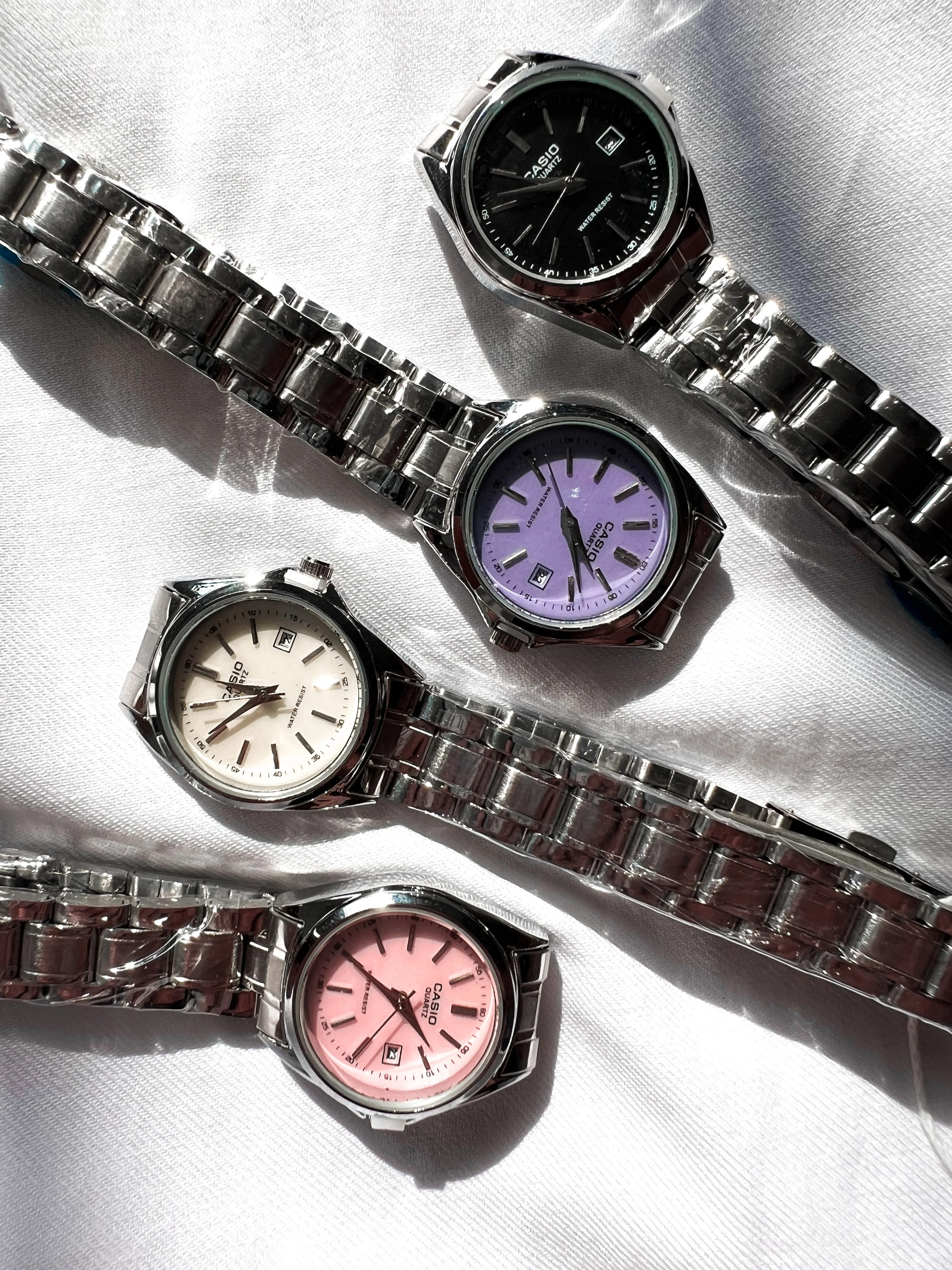 ساعت کاسیو کلاسیک با طراحی مینیمال و صفحه سفید شیری
