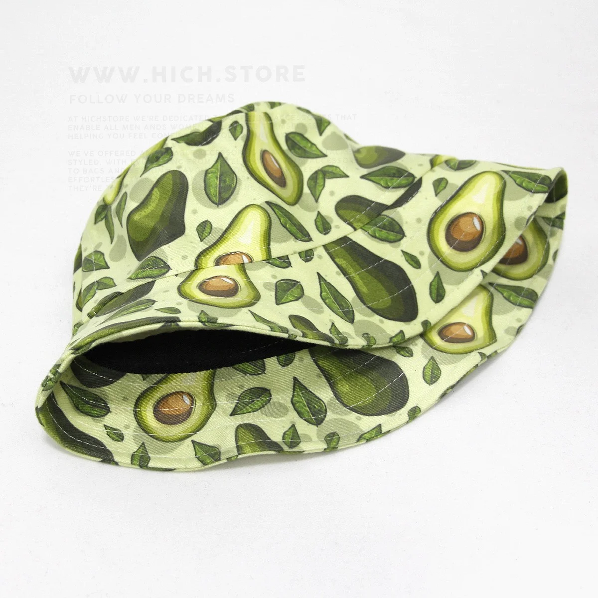 کلاه باکت آووکادو روشن مخمل یکی از طرح های انحصاری هیچ استور است که بطور ویژه برای مشتریان عزیزمان طراحی و تولید شده است. ارتفاع این کلاه باکت 15cm و طول لبه آن 6 سانتی متر است. کلاه باکت آووکادو تیره مخمل فری سایز بوده و برای افراد بالای 9 سال مناسب است. جنس پارچه این کلاه باکت مخمل است و طرح چاپ شده روی آن کیفیت بسیار بالایی برخوردار میباشد.