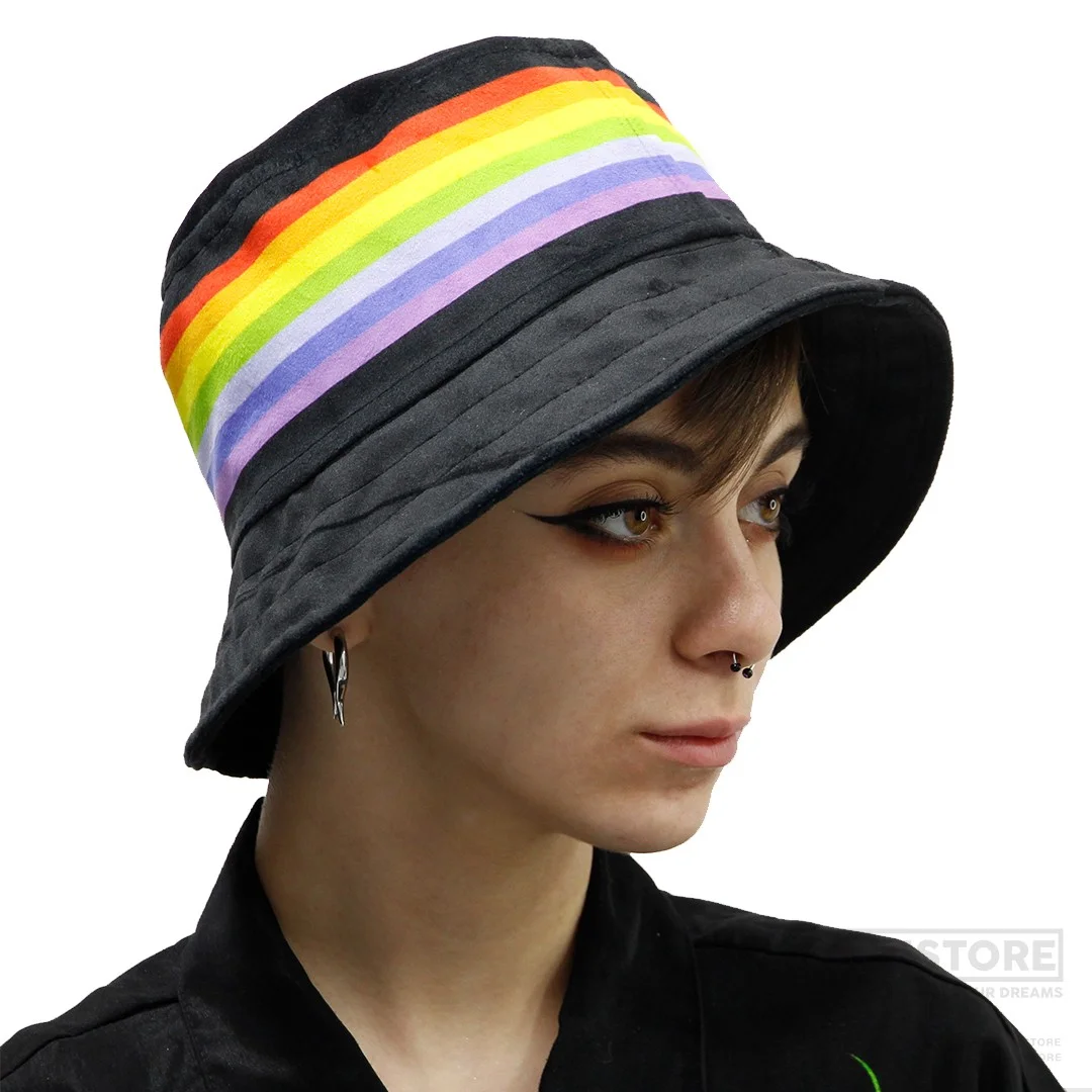 کلاه باکت رنگین کمان مخمل یکی از طرح های انحصاری هیچ استور هستند که به سفارش مشتریان عزیز طراحی و دوخته شده است. طول لبه این کلاه ها 6 سانت و ارتفاع آن ها 15 سانتی متر می باشد. کلاه های باکت رنگین کمان فری سایز بوده و برای افراد بالای 6 سال مناسب می باشد. جنس پارچه این کلاه ها مخمل بوده و طرح های چاپ شده روی آن ها کاملا با کیفیت بوده و قابل شست و شو می باشد.