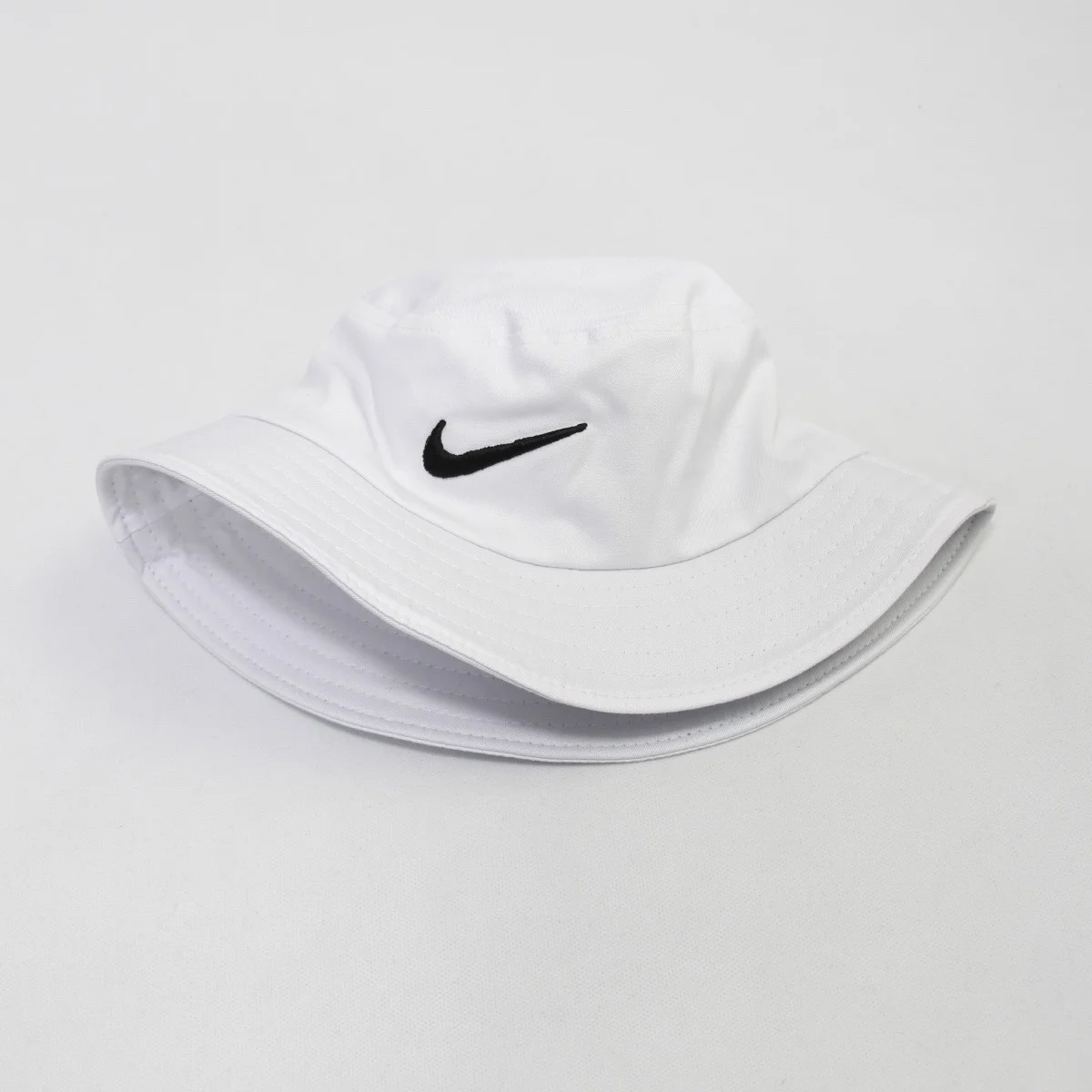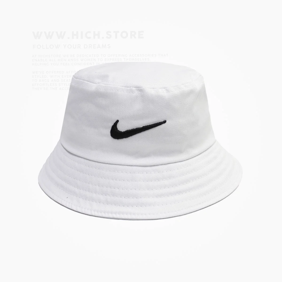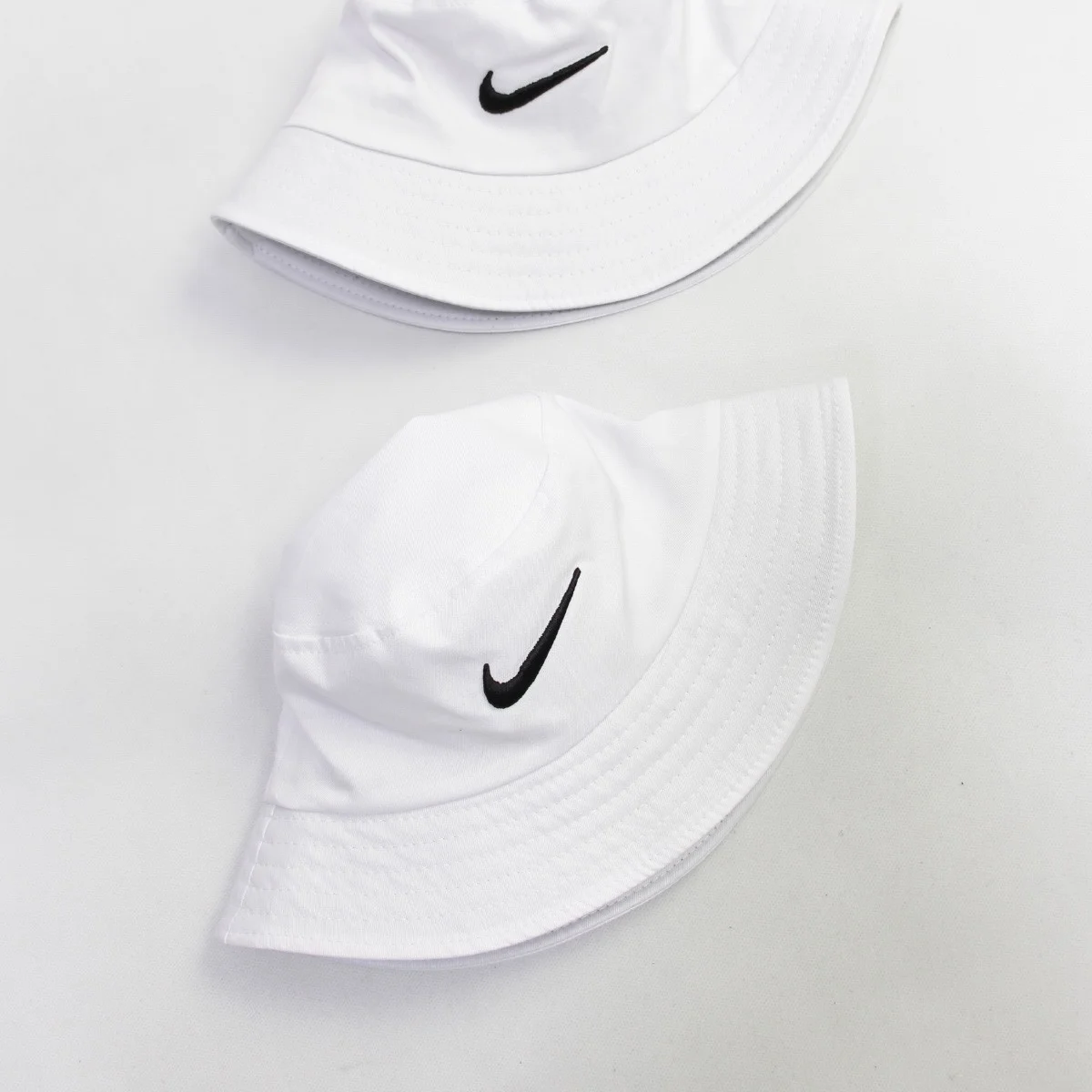 کلاه باکت نایک سفید یکی از پرفروش ترین هاست! ارتفاع این کلاه باکت 15cm و طول لبه آن 6 سانتی متر است. کلاه باکت نایک سفید فری سایز بوده و برای افراد بالای 9 سال مناسب است. جنس کلاه باکت که لوگوی NIKE روی آن گلدوزی شده، 100 درصد نخی بوده و از کیفیت فوق العاده ای برخوردار است.
