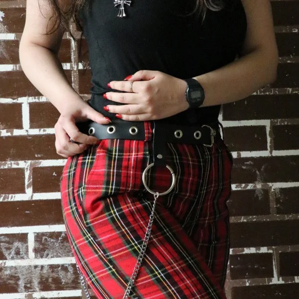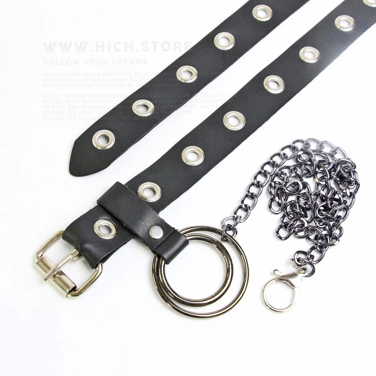 طول کمربند 120 سانتی متر بوده و به راحتی قابلیت تنظیم سایز دارد. کمربند تک پانچ باریک دارای یک زنجیر با آبکاری رنگ دودی به طول 60 سانتی متر نیز می باشد. پوسته کمربند از جنس چرم مصنوعی بوده و در طول زمان پوسیده و یا پوسته پوسته نمی شود. کمربندهای تک پانچ باریک هیچ استور با طراحی خاص و قابلیت تنظیم شدن سایز به راحتی قابل استفاده برای هر سایز کمری می باشد. این کمربند دو حلقه فلزی با آبکاری دودی به همراه خود دارد که قابل جداسازی نیز هستند.