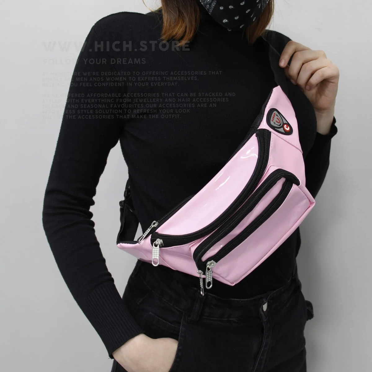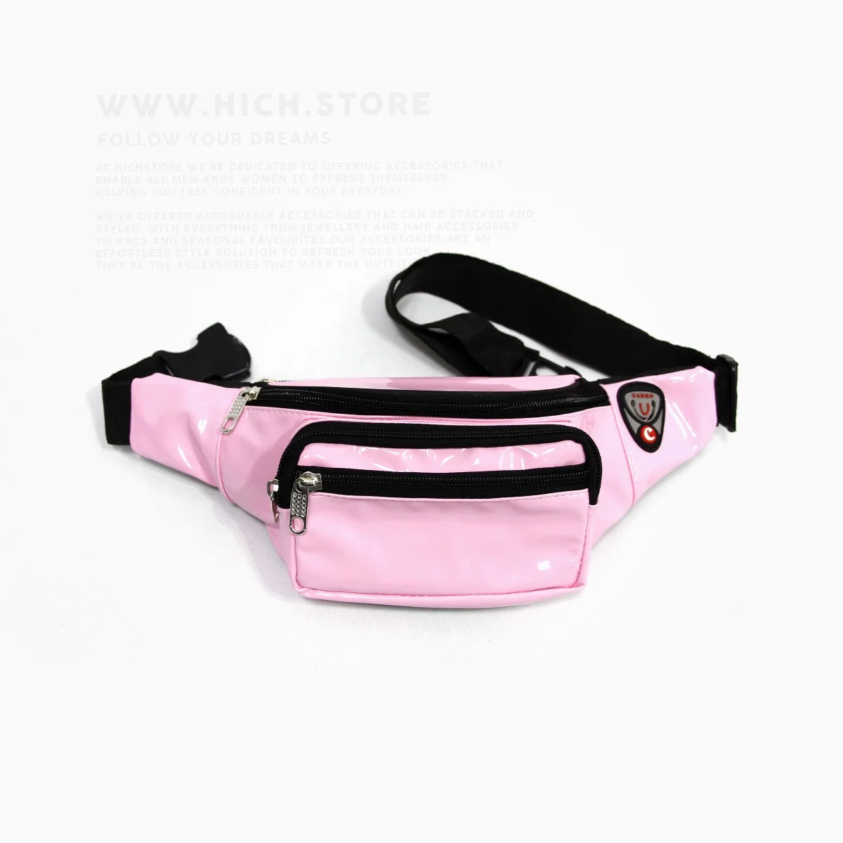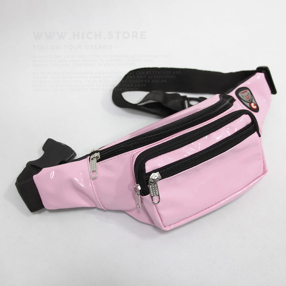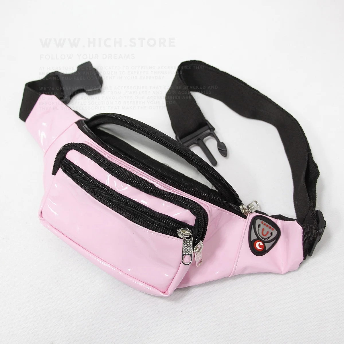 کیف کمری صورتی آدامسی هیچ استور بسیار سبک بوده و دوختی فوق العاده با کیفیت دارد. کیفیت چرم و دوخت این نوع کیف های کمری با دیگر کیف های کمری موجود در بازار قابل مقایسه نیست. شما می توانید این کیف های کمری را که قابلیت تنظیم سایز نیز دارند را بصورت اریب روی دوش و یا بصورت بستن روی قسمت کمر استفاده نمایید. کیف کمری هیچ استور با 4 جیب که بصورت زیپی باز و بسته می شوند بسیار جا دار بوده و دارای یک نگهدارنده مخصوص هندزفری نیز می باشد. پشتی عرقگیر و همچنین آستر و تودوزی زیبای این کیف های کمری هم از دیگر خصوصیات بارز این مدل به شمار میرود.