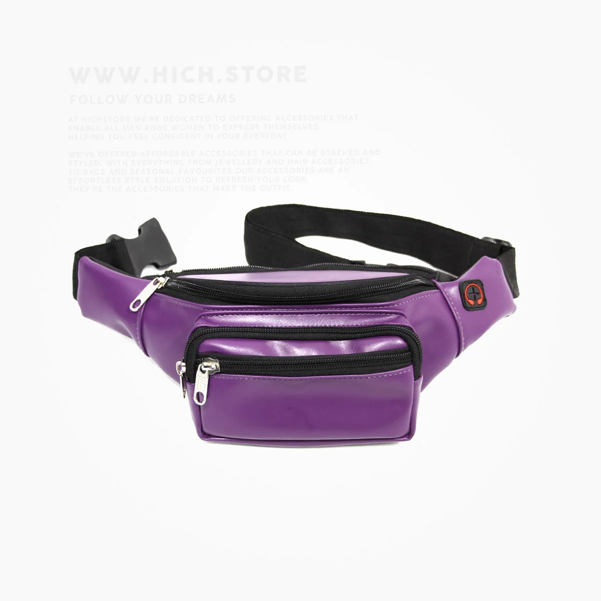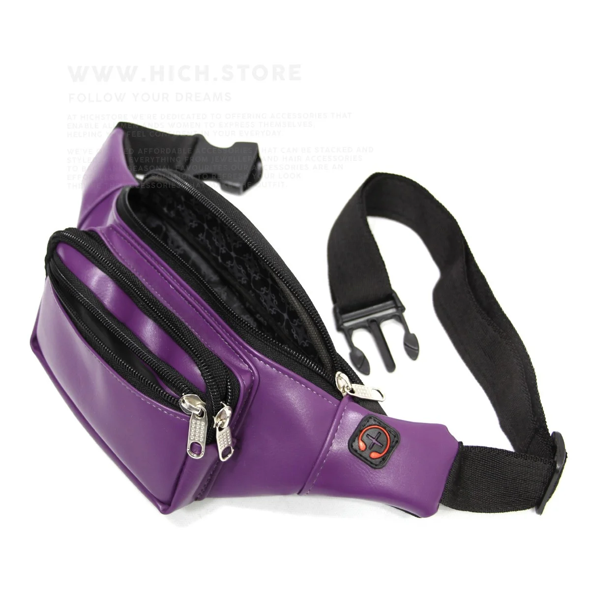 کیف کمری چرمی بنفش هیچ استور بسیار سبک بوده و دوختی فوق العاده با کیفیت دارد. کیفیت چرم و دوخت این نوع کیف های کمری با دیگر کیف های کمری موجود در بازار قابل مقایسه نیست. شما می توانید این کیف های کمری را که قابلیت تنظیم سایز نیز دارند را بصورت اریب روی دوش و یا بصورت بستن روی قسمت کمر استفاده نمایید. کیف کمری هیچ استور با 4 جیب که بصورت زیپی باز و بسته می شوند بسیار جا دار بوده و دارای یک نگهدارنده مخصوص هندزفری نیز می باشد. پشتی عرقگیر و همچنین آستر و تودوزی زیبای این کیف های کمری هم از دیگر خصوصیات بارز این مدل به شمار میرود.