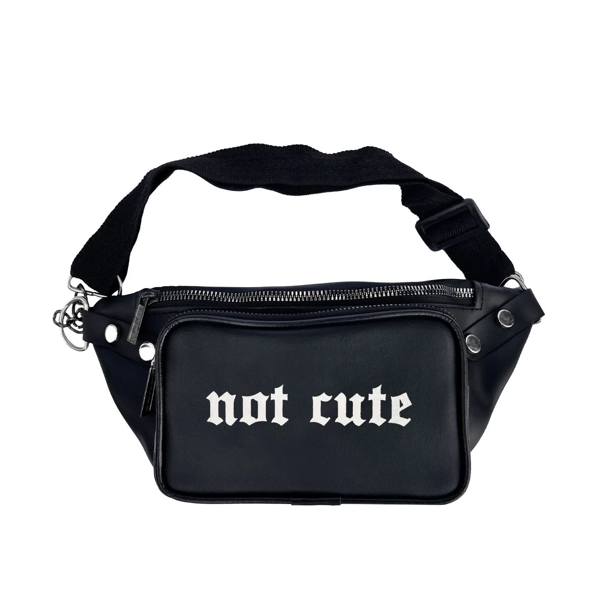 کیف کمری Not Cute دو جیب زیپ دار دارد و از چرم صنعتی (مصنوعی) ساخته شده است.